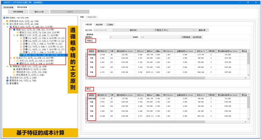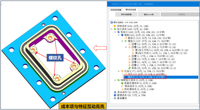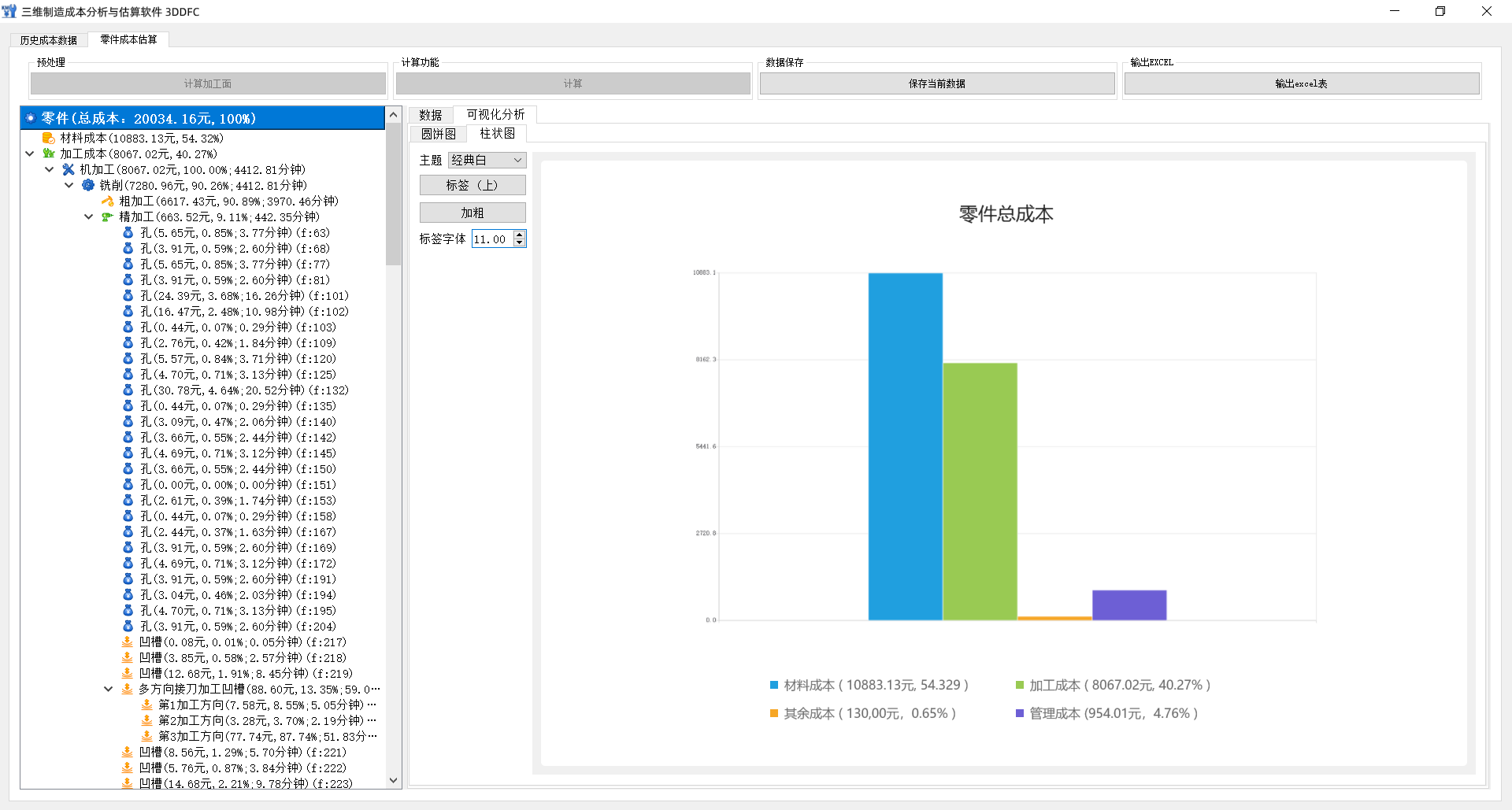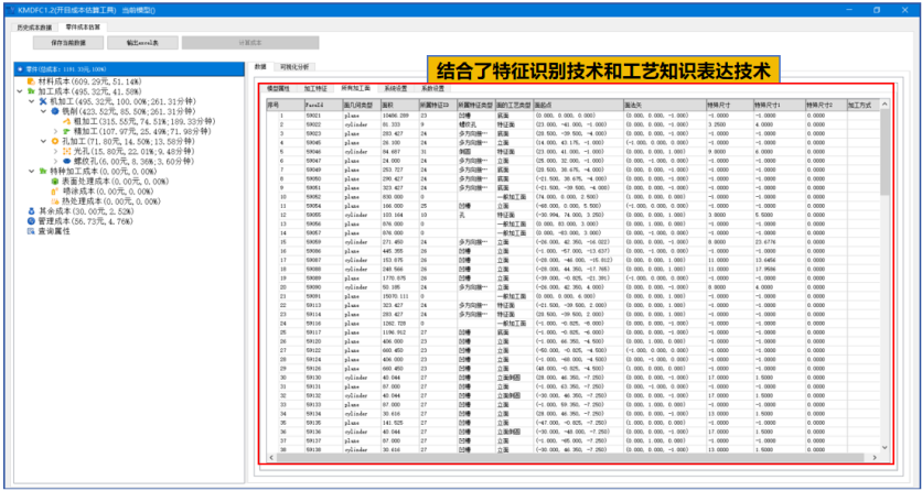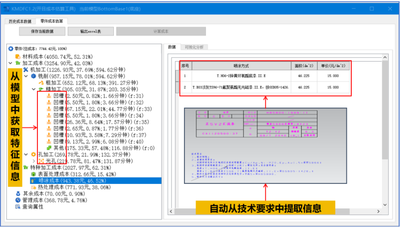 開(kāi)目3DDFC 是一款基于 MBD 模型和工藝知識(shí)庫(kù)的專(zhuān)業(yè)三維制造成本分析與估算軟件,在不依賴(lài)詳細(xì)工藝路線的情況下,根據(jù)零件幾何信息和精度信息一鍵式完成成本估算。該軟件充分融入“并行工程”的關(guān)鍵思想,并基于開(kāi)目的三維設(shè)計(jì)模型特征識(shí)別技術(shù),以及零件加工成本計(jì)算模型,能快速獲得相對(duì)準(zhǔn)確的加工成本。為面向成本的設(shè)計(jì)優(yōu)化提供參考指引,也為企業(yè)對(duì)外產(chǎn)品報(bào)價(jià)或產(chǎn)品外協(xié)件采購(gòu)價(jià)格提供量化依據(jù),實(shí)現(xiàn)降本增效。
