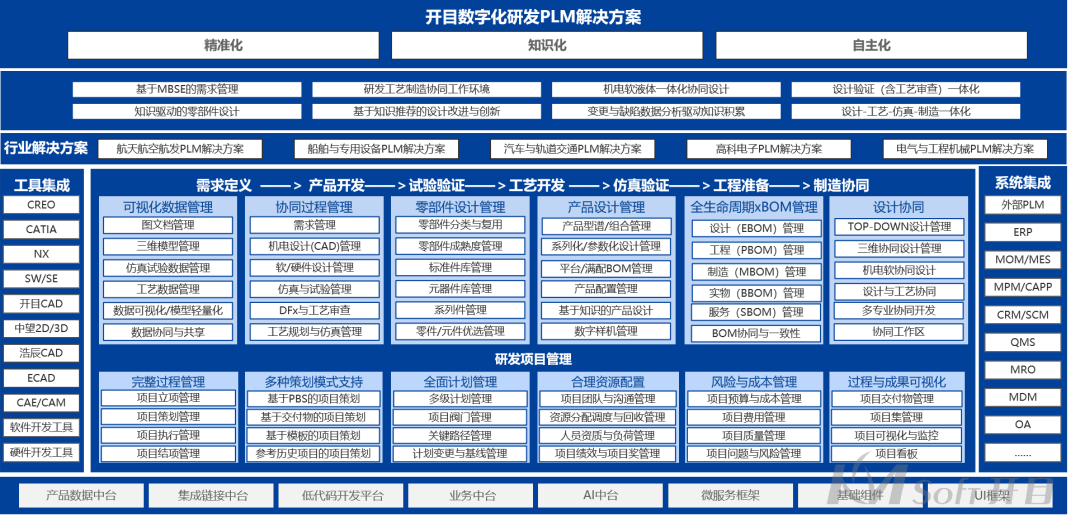 KMPLM CLOUD是由武漢開(kāi)目信息技術(shù)股份有限公司自主研發(fā)的云原生、微服務(wù)、國(guó)產(chǎn)自主可控的新一代PLM系統(tǒng),能為企業(yè)構(gòu)建從研發(fā)到制造的端到端的數(shù)字主線,支持產(chǎn)品全生命周期的數(shù)字化管理和協(xié)同,推動(dòng)快速響應(yīng)用戶需求的全價(jià)值鏈的變革,幫助企業(yè)實(shí)施研發(fā)數(shù)字化轉(zhuǎn)型,從而達(dá)到提升研發(fā)效率和質(zhì)量,促進(jìn)創(chuàng)新和持續(xù)提升競(jìng)爭(zhēng)力的戰(zhàn)略目標(biāo)。