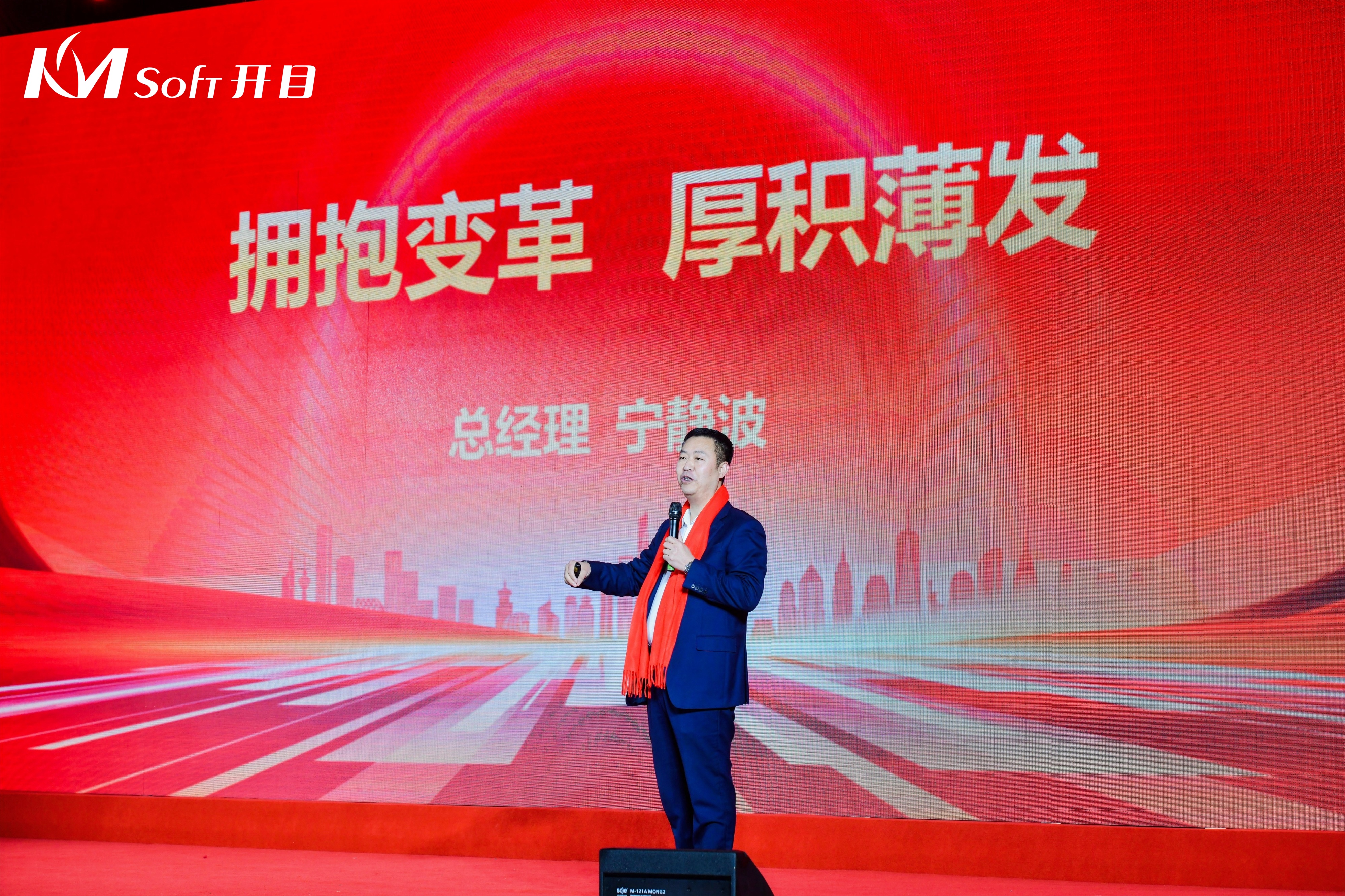 年會(huì)伊始,總經(jīng)理寧?kù)o波發(fā)表《擁抱變革,厚積薄發(fā)》主題致辭。寧總向全體員工及家屬、合作伙伴及關(guān)心支持開(kāi)目發(fā)展的社會(huì)各界朋友,致以最真誠(chéng)的感謝和最衷心的祝福,并從市場(chǎng)定位、產(chǎn)品創(chuàng)新、業(yè)務(wù)開(kāi)拓、項(xiàng)目交付、運(yùn)維服務(wù)、團(tuán)隊(duì)管理等方面做出了規(guī)劃,希望開(kāi)目人新的一年在挑戰(zhàn)中擁抱變革,在機(jī)遇中再攀高峰,邁入高質(zhì)量發(fā)展新階段。