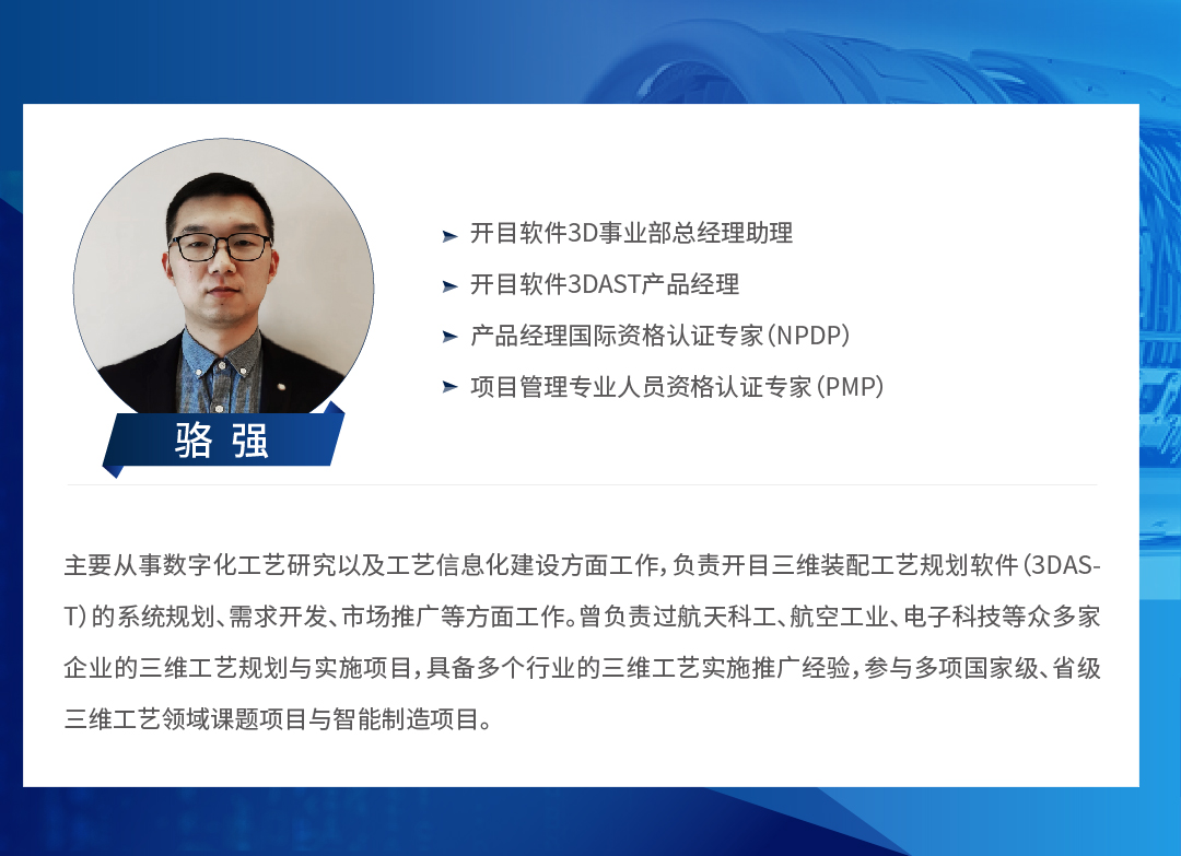 本期研討會(huì)特邀開(kāi)目公司3D事業(yè)部總經(jīng)理助理/3DAST產(chǎn)品經(jīng)理駱強(qiáng)先生,航天系統(tǒng)專(zhuān)家蔣科先生、中車(chē)南京浦鎮(zhèn)車(chē)輛數(shù)字工藝專(zhuān)家李樹(shù)棟先生,做客開(kāi)目線(xiàn)上直播間,與您一同探討制造企業(yè)如何部署和應(yīng)用三維裝配工藝規(guī)劃與仿真系統(tǒng),助力制造企業(yè)變革與創(chuàng)新。