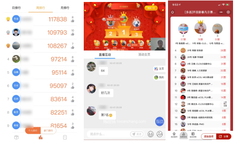 “新春原創(chuàng)短視頻大賽”,歌唱、舞蹈、搞笑、文藝類節(jié)目層出不窮,無一不體現(xiàn)出多才多藝、積極向上的KMers生活態(tài)度;“趣味知識競答”,KMers紛紛奮勇爭先,不出一秒,答案即出,活似生活百科全書,讓人大為驚嘆; “拜拜卡路里”,過年既要帥氣美美噠,也要健康瘦到家,每天的最高步數(shù)榜不停刷新,打破每逢佳節(jié)胖幾斤的魔咒;最激動人心的就是“HI現(xiàn)場互動抽獎”,抽一抽、搖一搖,現(xiàn)金大獎驚喜不斷,BOSS紅包大派送,為開目人增添了一份濃濃的年味。