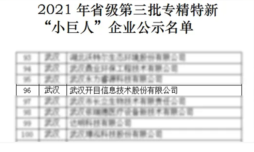 2021年,開目公司成功入選湖北省“專精特新”小巨人企業(yè),成長為創(chuàng)新能力強(qiáng)、掌握關(guān)鍵核心技術(shù)的排頭兵企業(yè)。