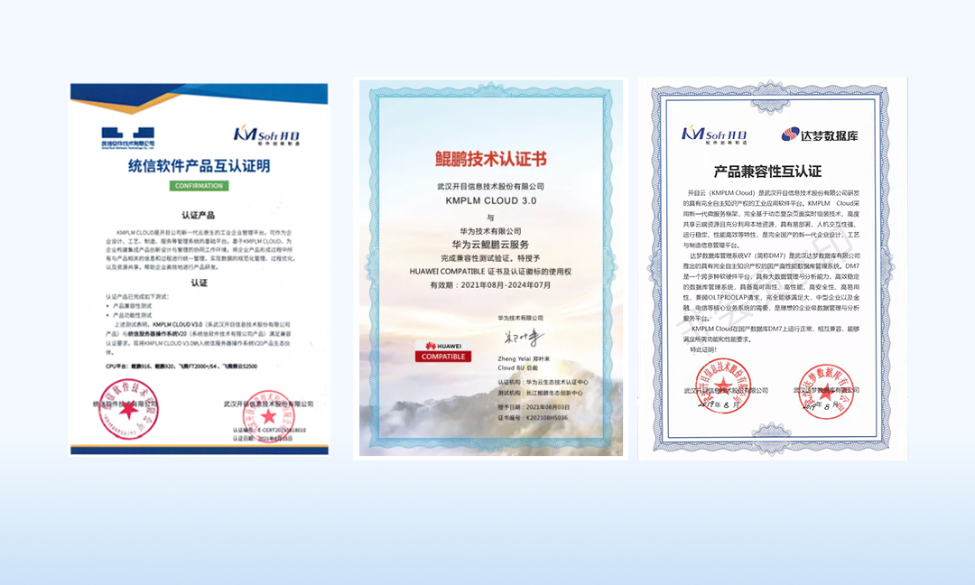 作為民族工業(yè)軟件的杰出代表,開目不斷進(jìn)行技術(shù)預(yù)研以及跨平臺功能改造,2021年,自主研發(fā)的eCOL PLM、KMPLM CLOUD平臺打通了與銀河麒麟、統(tǒng)信、深度等國產(chǎn)操作系統(tǒng),以及鯤鵬、飛騰、兆芯等國產(chǎn)CPU硬件、達(dá)夢數(shù)據(jù)庫等主流的國產(chǎn)軟硬件平臺兼容,充分實(shí)現(xiàn)了KM PLM系統(tǒng)的完全自主國產(chǎn)化,并獲得與華為云鯤鵬云服務(wù)、統(tǒng)信操作系統(tǒng)、達(dá)夢數(shù)據(jù)庫兼容認(rèn)證證書。