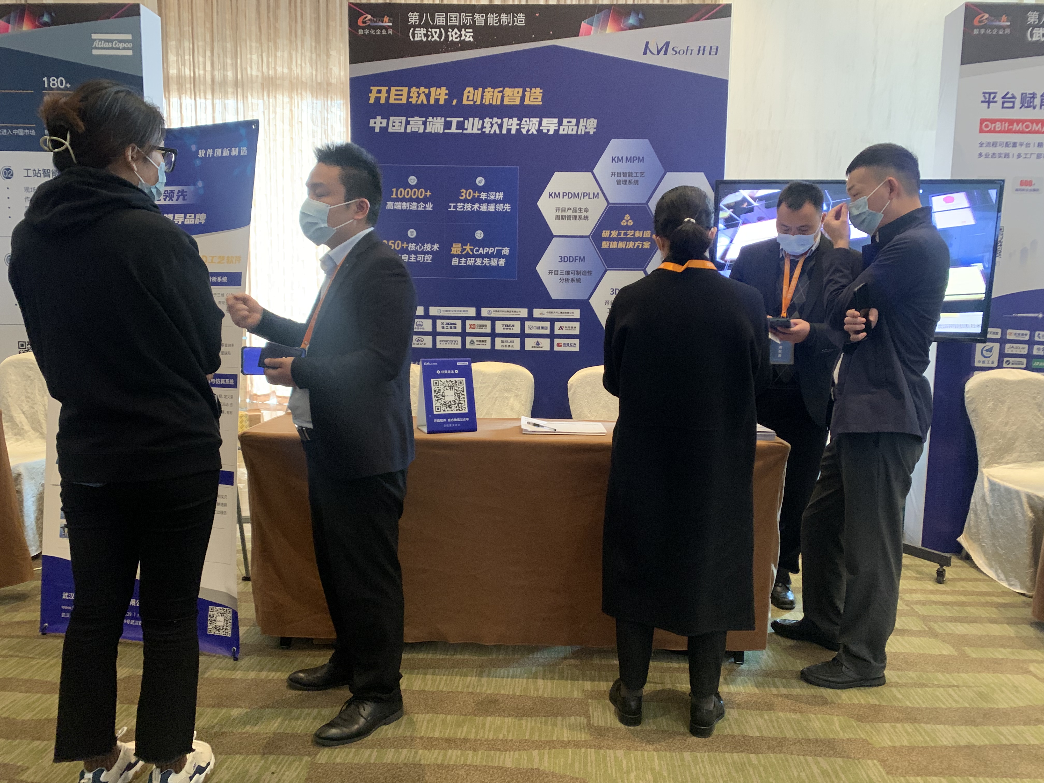 在會(huì)場(chǎng)外展示區(qū),開(kāi)目軟件全面展示了自主研發(fā)的PLM、MPM、MES等一系列覆蓋設(shè)計(jì)、工藝、制造環(huán)節(jié)的一體化智能制造解決方案以及以KMCAPP、3DAST、3DMPS、3DDFM為代表的國(guó)內(nèi)領(lǐng)先的智能工藝工具產(chǎn)品。專業(yè)先進(jìn)的產(chǎn)品,詳實(shí)的講解,豐富的展示,“開(kāi)目智造”一經(jīng)登場(chǎng)便吸引了眾多參觀嘉賓駐足交流。