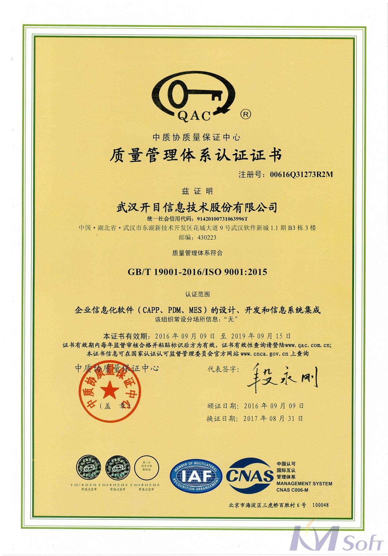 2019年7月29日,武漢開目信息技術(shù)股份有限公司迎來(lái)了2019年ISO9001:2015版質(zhì)量管理體系再認(rèn)證審核,公司總經(jīng)理寧?kù)o波、各部門負(fù)責(zé)人及質(zhì)量部人員參加了審核會(huì)。來(lái)自中質(zhì)協(xié)質(zhì)量保證中心的審核小組,對(duì)開目公司質(zhì)量管理體系涉及到的各個(gè)部門進(jìn)行了現(xiàn)場(chǎng)審核,并通過聽取匯報(bào)、查閱資料、實(shí)地考察等多種方式對(duì)開目公司的質(zhì)量管理體系運(yùn)行狀況進(jìn)行了全面審核。經(jīng)過兩天緊張有序的審核工作,審核組認(rèn)為開目公司的質(zhì)量管理體系有效運(yùn)行,符合ISO9001:2015版要求,并一致同意開目公司通過此次審核。
