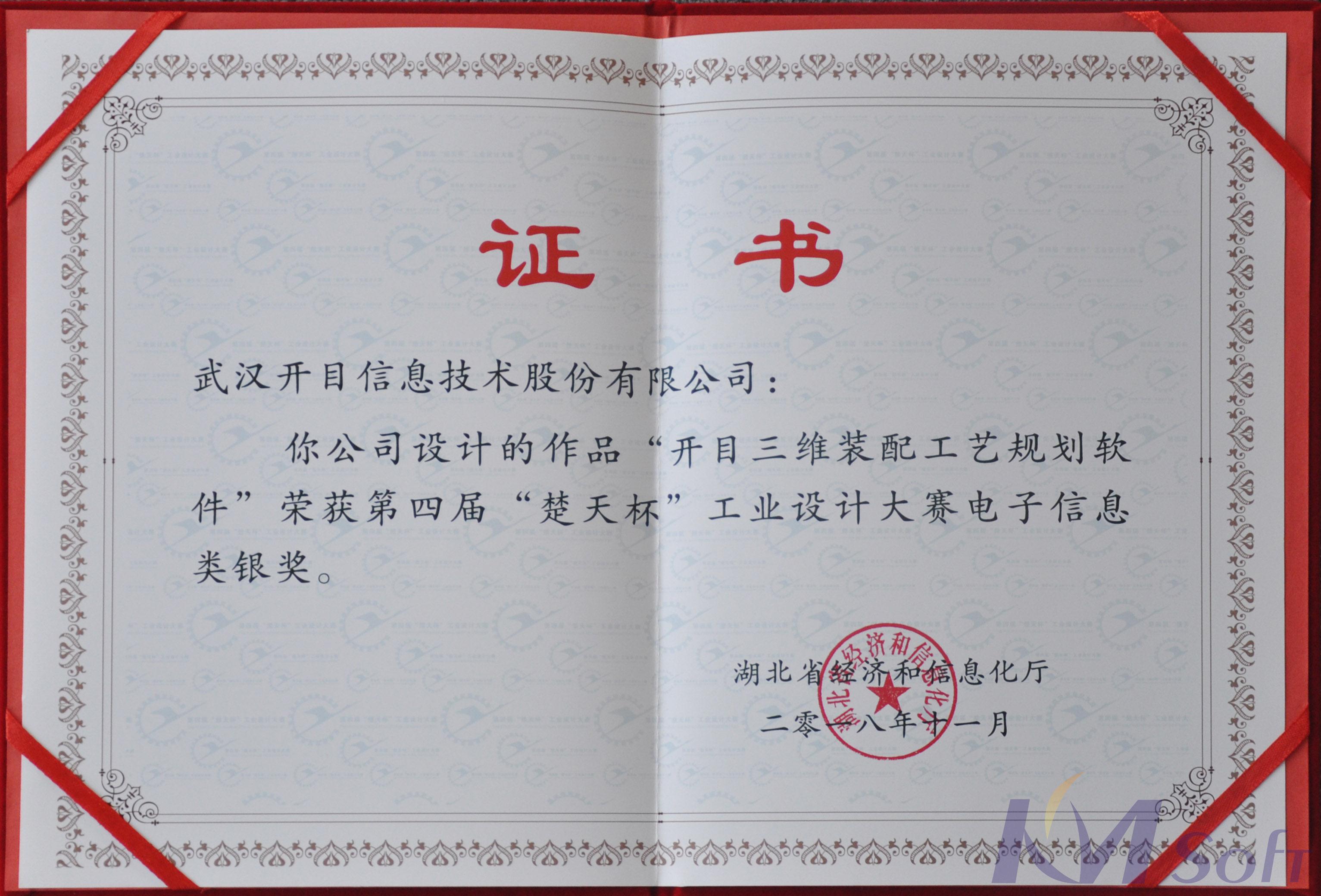 2018年11月23日,由湖北省經(jīng)信委主辦的第三屆中國優(yōu)秀工業(yè)設(shè)計獎湖北分區(qū)賽暨第四屆“楚天杯”工業(yè)設(shè)計大賽獲獎作品展暨頒獎儀式在武漢隆重舉行,武漢開目信息技術(shù)股份有限公司自主研制的開目三維裝配工藝規(guī)劃軟件3DAST榮獲第四屆“楚天杯”工業(yè)設(shè)計大賽銀獎。