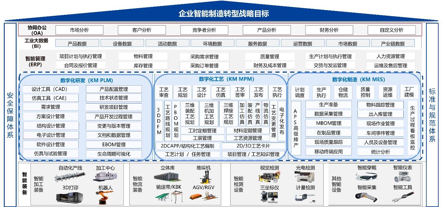 時至今日,開目公司已形成了完整的智能制造解決方案及高端工業(yè)軟件產(chǎn)品體系,包含KMPLM、KMMPM、KMMOM等一系列覆蓋產(chǎn)品研發(fā)、工藝設計、生產(chǎn)制造的一體化管理平臺以及以KMCAD、KMCAPP、KM3DDFM、KM3DAST、KM3DMPS、KM3DWELD、KM3DVIEWER為代表的研發(fā)設計類工具軟件產(chǎn)品,全方位助力中國制造企業(yè)向“中國智造”邁進。