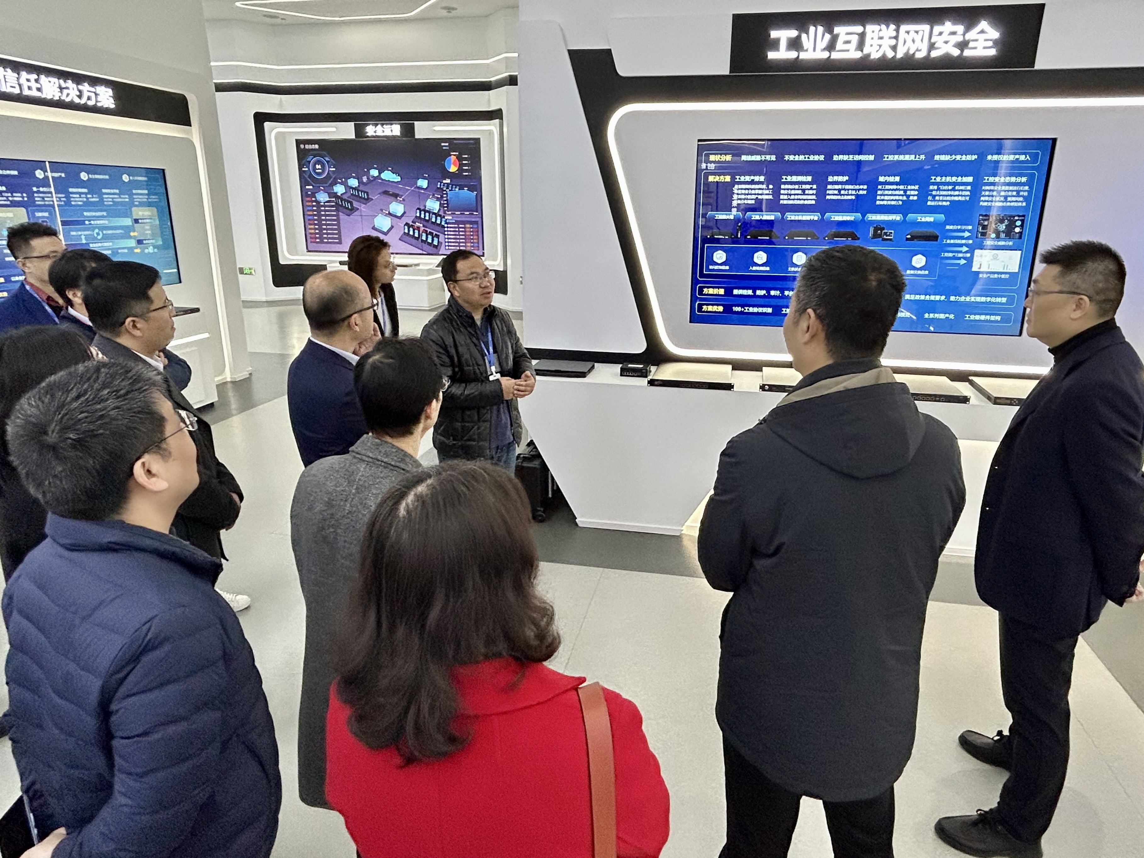 交流學習伊始,在迪普科技相關領導帶領下,開目訪問團隊參觀了企業(yè)展廳,全面細致的了解了迪普的業(yè)務概況。