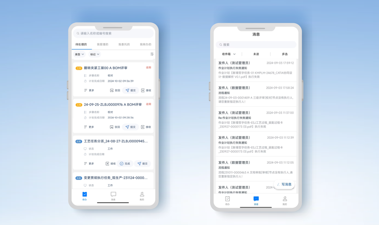 開目KMPLM CLOUD移動端的上線應用,可以使用戶在任何時間、任何地點查看和處理待辦流程和任務,為企業(yè)提供更靈活、更高效的協(xié)作和管理方式,幫助團隊提高工作效率。移動APP和PC端共用賬號系統(tǒng),可跨區(qū)域進行任務處理和流程簽審,實現(xiàn)實時審批和任務提交、轉(zhuǎn)辦等;同時可在移動應用中查看實時消息,發(fā)送消息,能夠及時通知提醒到干系人,提升工作效能。