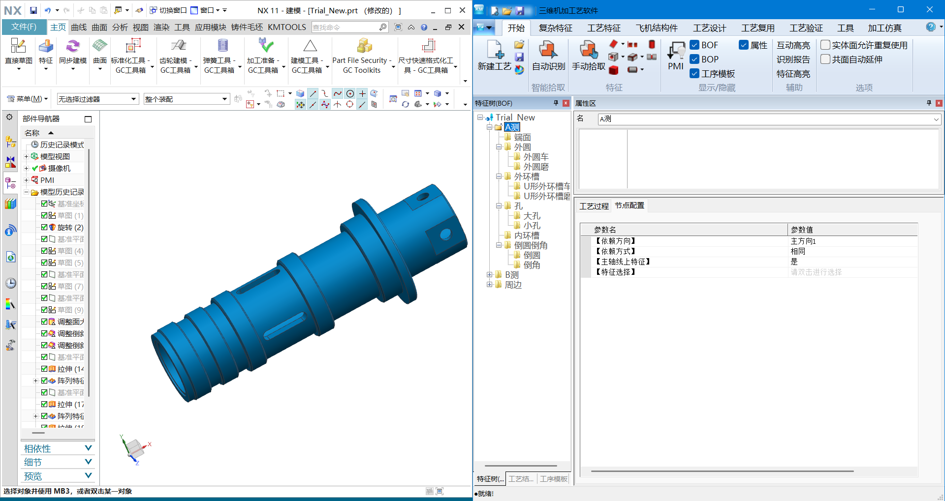 3DMPS 12.0軟件結(jié)合加工工藝對加工策略、加工刀具和加工位置集成優(yōu)化,將機(jī)加工藝數(shù)據(jù)自動傳遞至CAM軟件,生成刀位文件和NC代碼,并將CAM軟件中完成的加工工藝(機(jī)床、刀具、加工參數(shù)、加工策略、NC代碼)回傳到3DMPS軟件,實現(xiàn)基于特征快速編程、數(shù)據(jù)雙向互通。