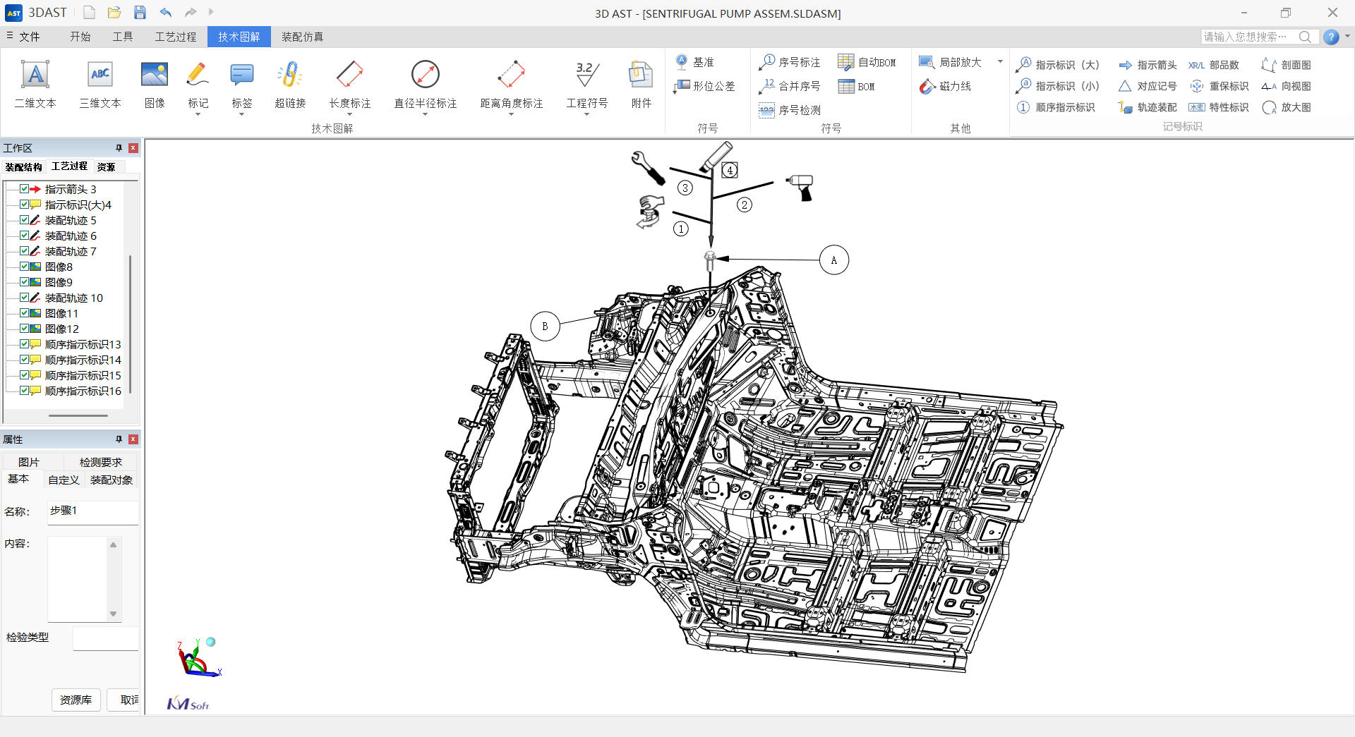 3DAST 18.0利用先進(jìn)的三維可視化技術(shù),將白車身總裝工藝以生動(dòng)、直觀的三維圖解形式呈現(xiàn)。用戶可在軟件中對(duì)三維白車身模型進(jìn)行全方位瀏覽、拆解與標(biāo)注,自由添加總裝記號(hào)、圖識(shí)等工藝信息,還支持動(dòng)態(tài)展示裝配流程與關(guān)鍵技術(shù)要點(diǎn),將復(fù)雜的白車身總裝工藝轉(zhuǎn)化為直觀易懂的可視化數(shù)字資產(chǎn)。
