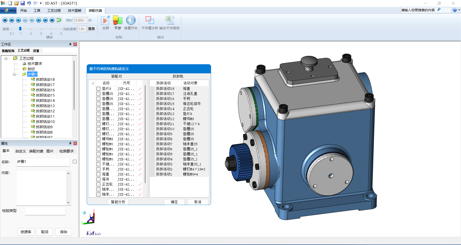 3DAST智能拆卸功能,可以基于零件空間位置與接觸關(guān)系,自動(dòng)推薦該工序零部件的拆卸順序與運(yùn)動(dòng)軌跡。這極大地簡(jiǎn)化了三維裝配工藝的制作流程,讓工程師從繁重的手動(dòng)操作中解脫出來(lái),減少了因人為失誤導(dǎo)致的設(shè)計(jì)返工,加快了產(chǎn)品從設(shè)計(jì)到生產(chǎn)的進(jìn)程,對(duì)于整體三維裝配工藝制作操作效率提升60%以上。