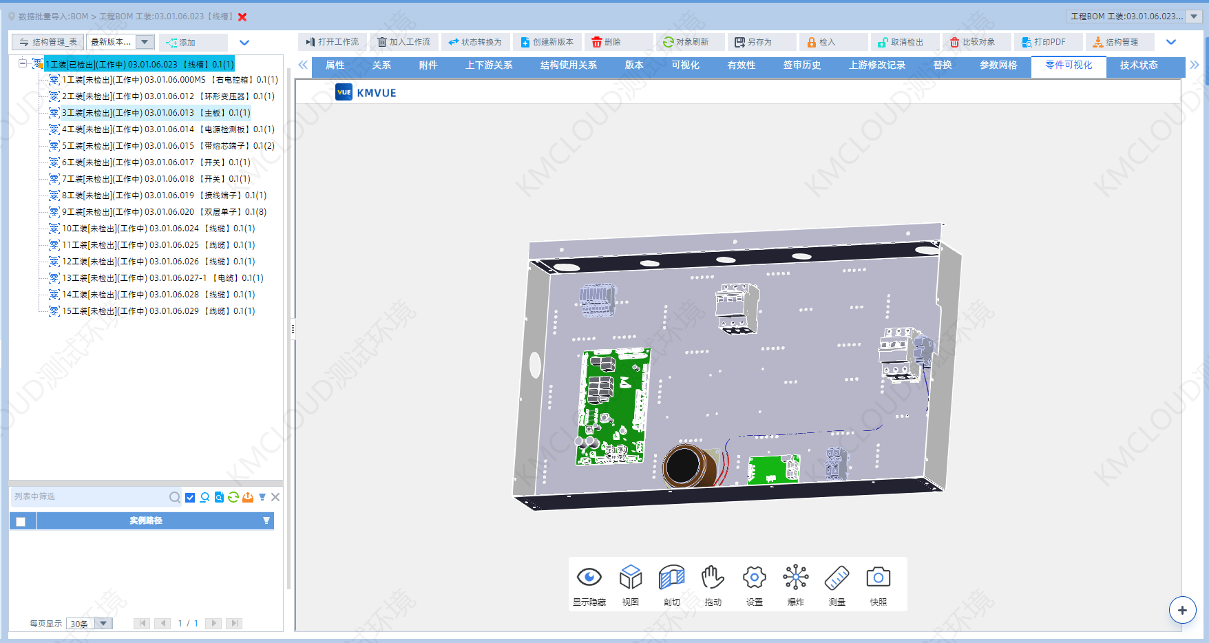 基于CAD設(shè)計(jì)模型,KMPLM CLOUD實(shí)現(xiàn)數(shù)據(jù)驅(qū)動的EBOM自動生成,智能識別零部件層級與裝配結(jié)構(gòu),支持屬性自動映射與繼承,完成從“設(shè)計(jì)BOM”到“制造BOM”的無縫轉(zhuǎn)換。這一過程不僅極大提升數(shù)據(jù)流轉(zhuǎn)效率,更構(gòu)建了企業(yè)統(tǒng)一的產(chǎn)品結(jié)構(gòu)數(shù)據(jù)源,為工藝規(guī)劃、供應(yīng)鏈協(xié)同與生產(chǎn)執(zhí)行提供“單一數(shù)據(jù)源”支撐,根治數(shù)據(jù)不一致問題。