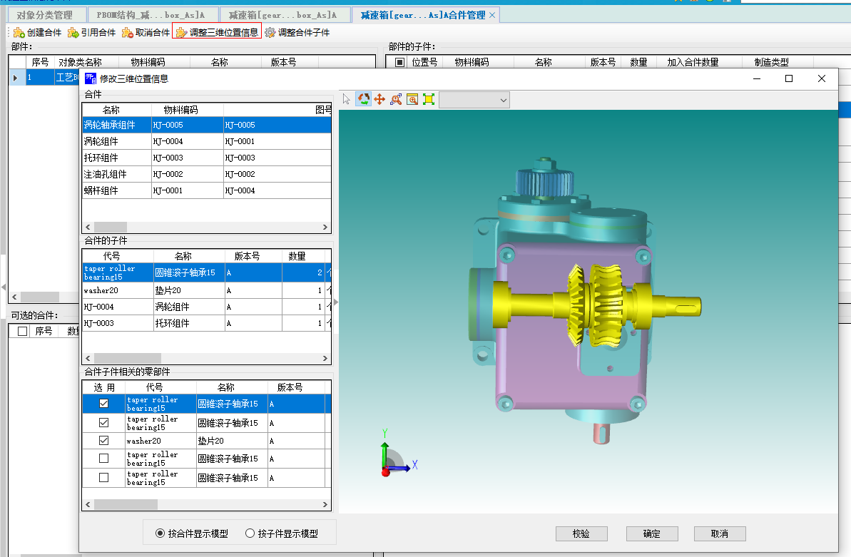 合件的維護(hù)是PBOM調(diào)整的重要工作之一,開(kāi)目eCOL PLM通過(guò)引用合件的三維模型以及合件的變更,可保障PBOM中結(jié)構(gòu)的完整性和一致性。新版本PLM能夠輔助企業(yè)規(guī)范合件庫(kù)的管理,實(shí)現(xiàn)合件庫(kù)的有效應(yīng)用,并且提供批量的合件操作功能,如部件批量自動(dòng)檢索、合件引用、合件變更等,大幅提供工作效率。同時(shí)也支持部件下合件的三維模型設(shè)計(jì),基于此模型來(lái)調(diào)整合件中具體的零件實(shí)例,以此支持基于具體位置的零件的合件生成,以及滿足左右件等合件生成的要求。