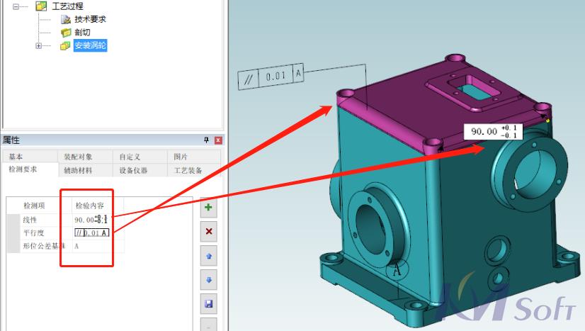 為進(jìn)一步提高編排效率,節(jié)約時間成本,3DAST 13.0新增PMI獨(dú)立展示、檢測要求自動填寫功能。用戶通過點(diǎn)選模型中尺寸標(biāo)注、文本等PMI信息,自動填入檢測要求屬性內(nèi),同時還可以通過一鍵式操作方式,提取模型中所有PMI屬性。