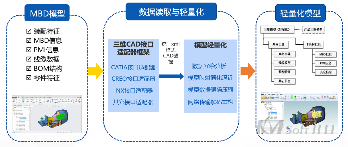 開(kāi)目3DAST系統(tǒng)深度適配主流三維CAD軟件,通過(guò)智能壓縮優(yōu)化技術(shù),在完整保留原始模型結(jié)構(gòu)、尺寸、屬性等關(guān)鍵信息的前提下,大幅降低模型體積,確保運(yùn)行流暢。無(wú)論是本地文件還是通過(guò)PLM系統(tǒng)調(diào)用的模型數(shù)據(jù),都能實(shí)現(xiàn)快速加載與精準(zhǔn)解析,徹底解決了不同軟件間數(shù)據(jù)不兼容的行業(yè)難題。